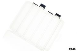 Reversible 145: Caja porta señuelos ligeramente más grande que la 140 ofrece 6 compartimentos por lado (medidas internas 144mm) para señuelos de tamaño hasta 140mm, EGI o jigs, lleva agujeros de drenaje. Medidas externas: 206mm X 170mm X 44mm.