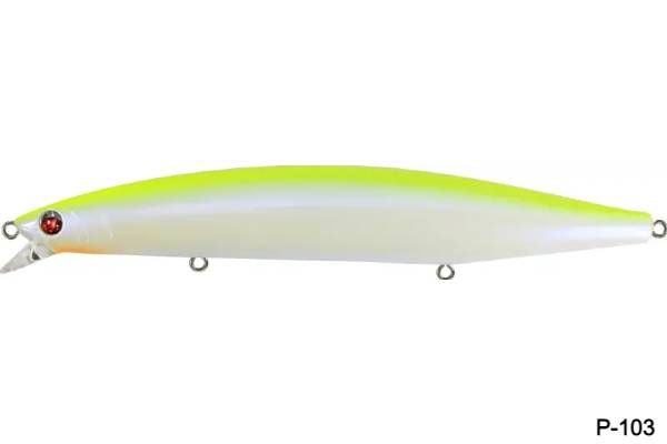 La versión hundida es slow sinking y estos señuelos agua salada bajan con la parte trasera inclinada. Asumen así una posición diagonal, con el morro que mira hacia arriba y los tres triples bien en evidencia. Descuida que son lo primero que un pez se va a encontrar en la boca